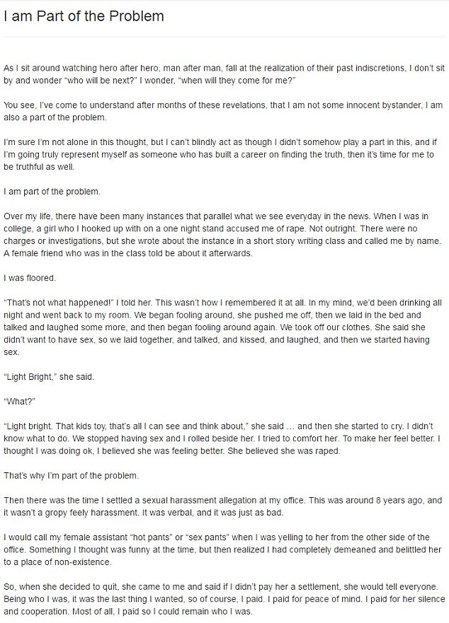 Morgan admitted in a lengthy statement which he posted on TwitLonger and linked to his own Twitter account on Wednesday.