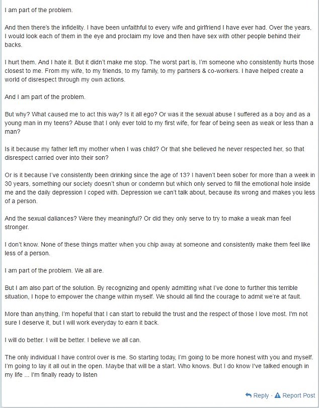 According to the Hollywood director, he says he has been accused of rape and admitted cheating on all of his wives and girlfriends he had back then.
