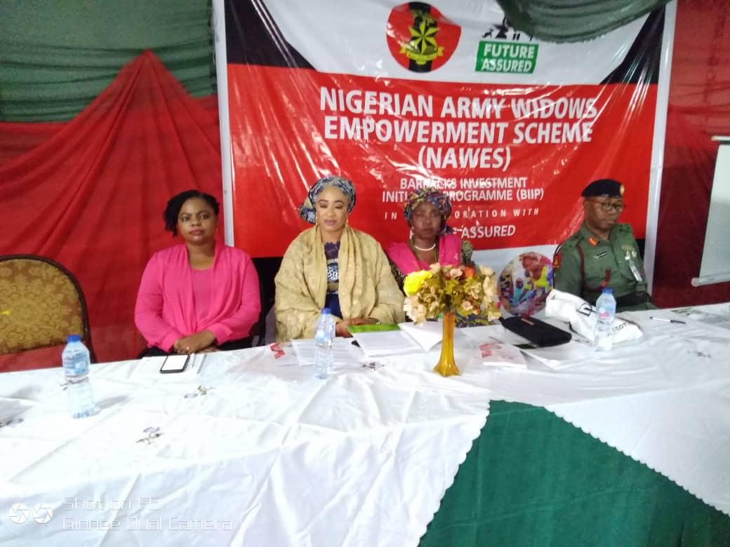 The wife of the president Her Excellency Dr Mrs Aisha Buhari has once again demonstrated her commitment to improving the lives of women and children by collaborating with the Nigerian Armed forces in training widows she made this known at the Future Assured empowerment programme, an empowerment scheme of the non governmental organisation of the First Lady in collaboration with Nigerian Army Widows Empowerment Scheme (NAWES).