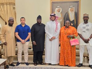 From L-R, Prince N. Edwin-Brown, H.E. Sheikh AbdulRahman Althani, Princess Adebowale Odutola.