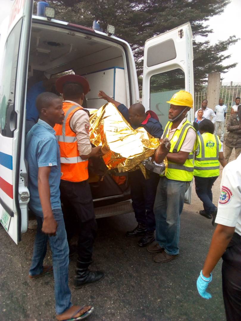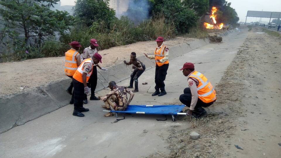Unfortunately two burnt bodies were recovered behind the fence of the gas station, while 8 casualties were also recorded with various degrees of burns and injuries which were attended to by the Officials of the Lagos State Ambulance Service and the Agency’s Paramedics before moving two with more degrees of burns to Trauma Centre, Toll Gate for further medical attention.