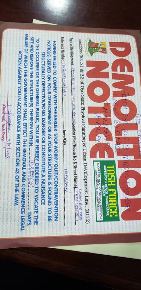 What are these letters for? Have we contravened the Oyo State building plan code? What have we really done to deserve a demolition Notice?
