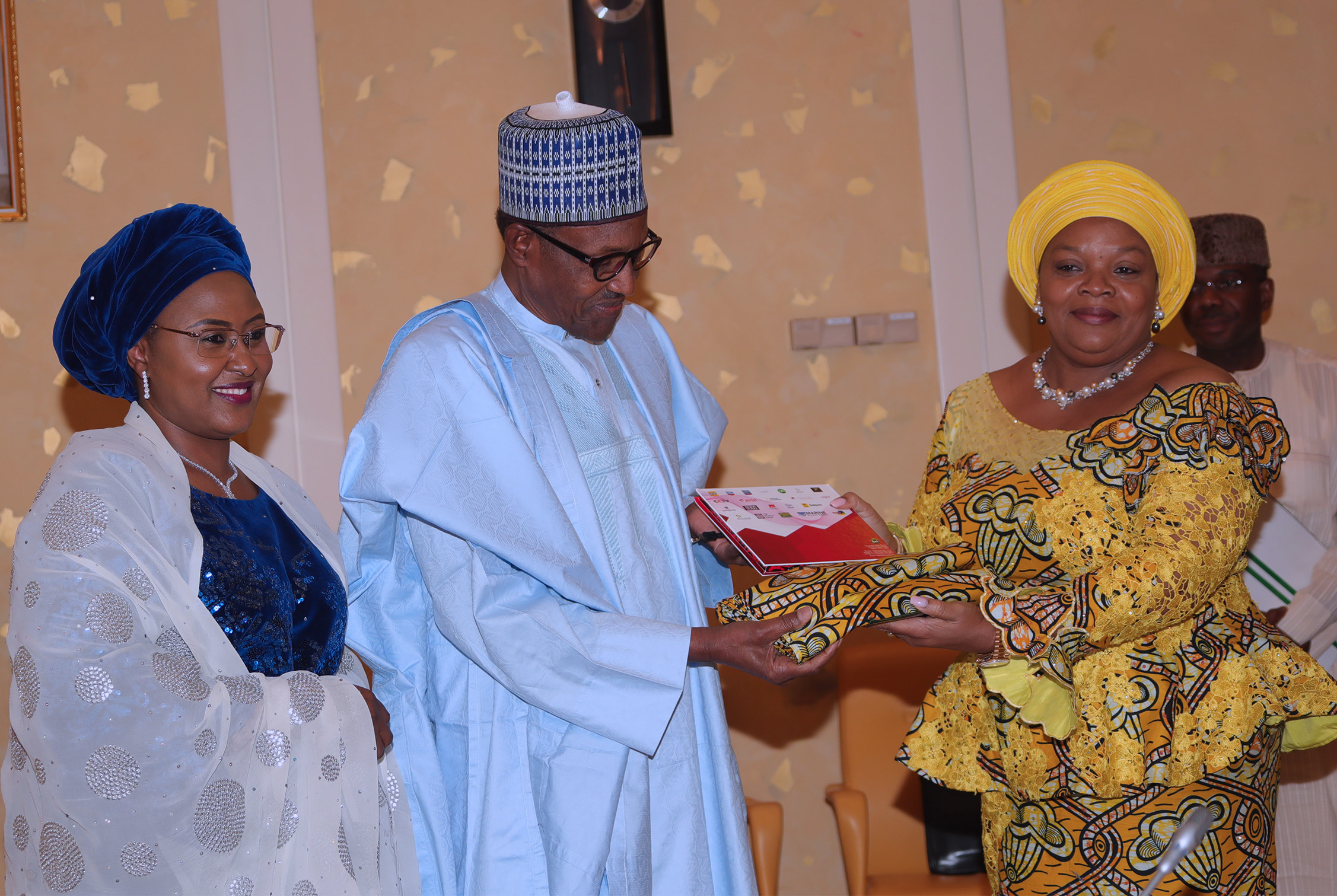 President Muhammadu Buhari, his wife Hajiya Aisha Muhammadu Buhari, Wife of Imo State Governor, Mrs Nkechi Okorocha and other Wives of States Governors during an audience at the State house Saturday night in Abuja. PHOTO; SUNDAY AGHAEZE. MAY 26TH MAY 2018.