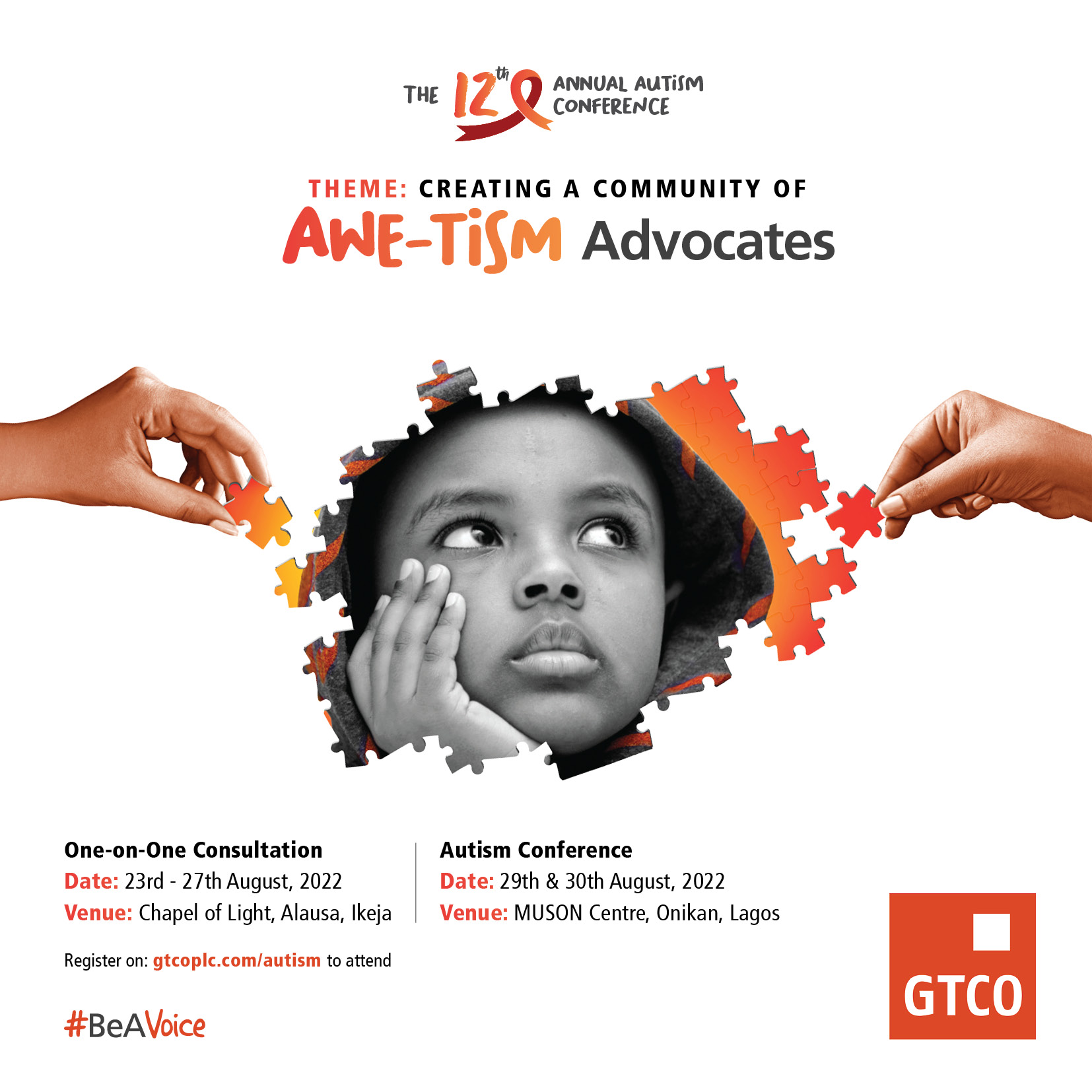 The 12th edition of the annual GTCO Autism Conference themed “Creating a Community of Awe-Tism Advocates” will hold on Monday and Tuesday, August 29th and 30th, 2022, at MUSON Center, Onikan, Lagos.