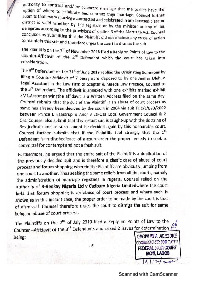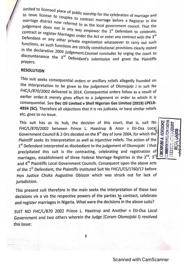 Ikoyi Marriage registry controversy: What the court actually said + certified copy of judgement