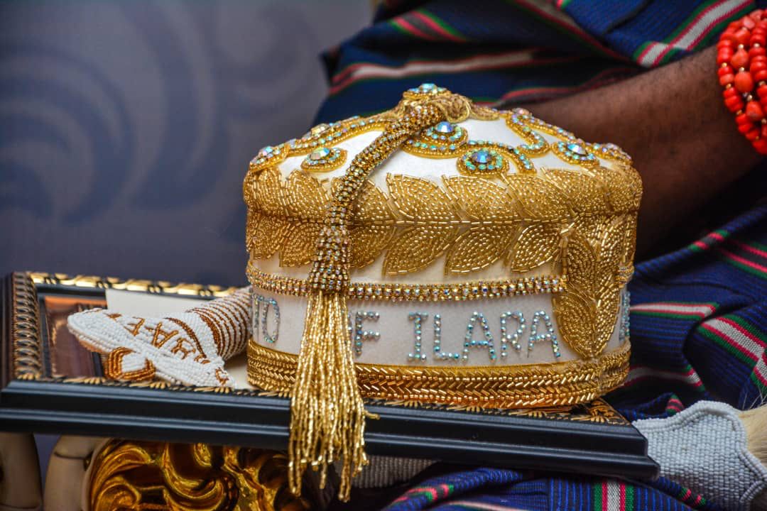 The installation continued as Alara directed an Oba in Ijebuland, Ogun State to decorate Folarin Coker with traditional beads and chieftaincy leaf (Akoko) and cap.