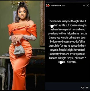 In a post shared on his Facebook account on Thursday, September 26, Bobrisky said he is considering suicide, citing ongoing attempts to tarnish his reputation and belittle him.