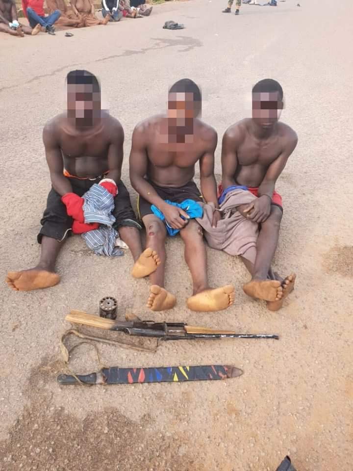 Weapons recovered from Some of the Suspects Include, 3 X Locally Made Single Barrel Guns, 3 X Locally Made Pistols, 5 X 7.62 MM(SP) RDS, 30 X 9MM RDS, One Pistol Mag and an Empty Case. Others Include 4 X Knives, One X Locally Made Sword, 3 Cutlasses, One Iron Rod, 2 PAIRS OF Boots, 3 X Vigilante ID Cards, 5 X Motor Cycles, One Tricycle, One Thousand Korean Currency Note, A Wrist Watch, One Power Bank ,25 Assorted Phones, 2 Car Keys, 2 House Keys and A Hoe.