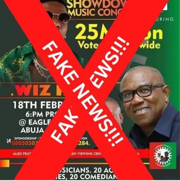 Graphic designs/posters claiming Wizkid will be performing at a campaign concert in Abuja have been circulating on social media especially Twitter and Instagram.