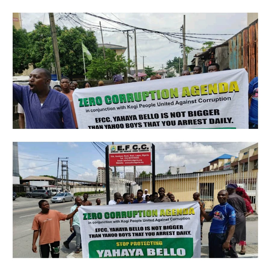 Speaking during the protest, Convener of the group, Mr Abe Emmanuel Kolawole:”We are in support of EFFC’s quest to arrest Bello, and we are saying that as Nigerians, as Kogi indigenes, we must kill corruption before corruption kills us.