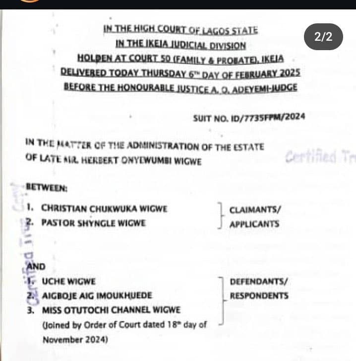 At the center of the controversy is a lawsuit filed by Pastor Shyngle Wigwe, the late CEO’s father, against his 26-year-old granddaughter, Otutochi Channel Wigwe.