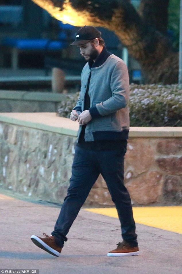 Liam looked a little less ready for manual labour as he emerged from his house, wearing brown trainers with navy slacks, and a short grey jacket with a black baseball cap.