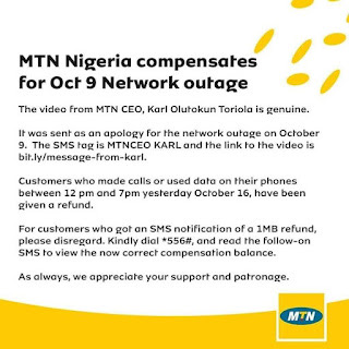 MTN Nigeria has compensated its subscribers with airtime and data due to the outage its consumers witnessed last Saturday. The Chief Executive Officer, MTN Nigeria, Karl Toriola, shared the information with subscribers on Sunday.