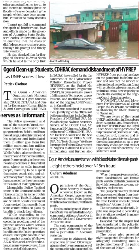 “We are aware of the recent UNEP publication in Bloomberg dated August 30, 2022 distancing itself from HYPREP and the Royal Dutch Shell’s corruption and cutting corner unprofessional practices of hate, chaos, betrayal and injustice attempt and attempted impropriety to sabotage the cleaning project so as to permanently endanger and extinct Ogoniland and her enclaves,” the statement read.