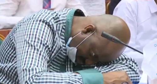 He fainted while he was being asked about the spending of the commission since he took over as Acting MD.