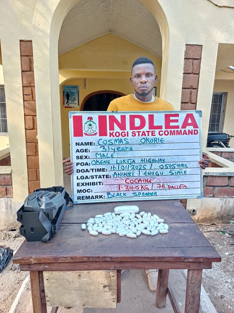 Her lid was blown open when NDLEA operatives on patrol along Okene-Lokoja highway in Kogi state on Thursday 16th January intercepted 31-year-old Cosmas Okorie in a commuter bus coming from Lagos enroute Kano. Inside his black polythene bag was an audio speaker, which was used to conceal 76 pellets of cocaine weighing 1.340 kilograms, which he was going to deliver to Esther in Kano. A swift follow up operation in Kano led to the arrest of the female nursing university student later same day.