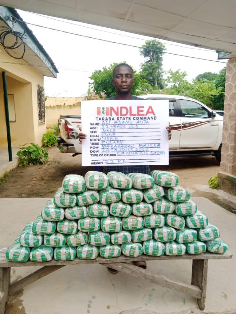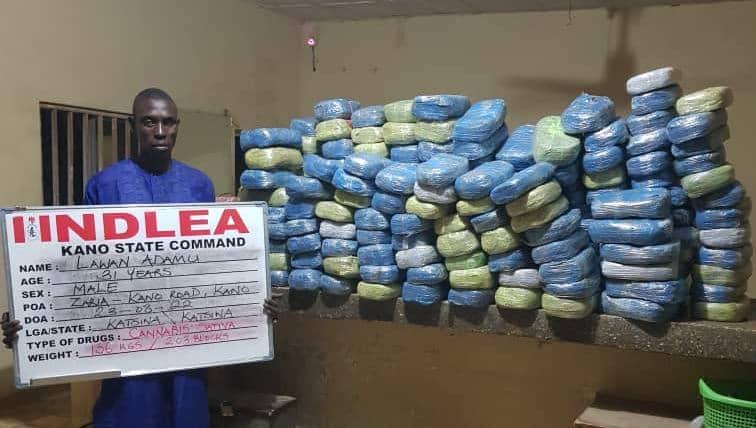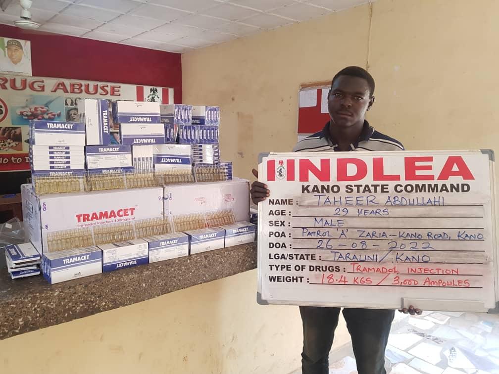 In Kano, a drug dealer Lawal Adamu, 31, was arrested along Zaria-Kano road, Kwanar Dangora, with 203 blocks of cannabis weighing 136kg, while another suspect, Taheer Abdullahi was nabbed on Friday 26th Aug. at Gadar Tamburawa, with 3000 ampules of tramadol injection.