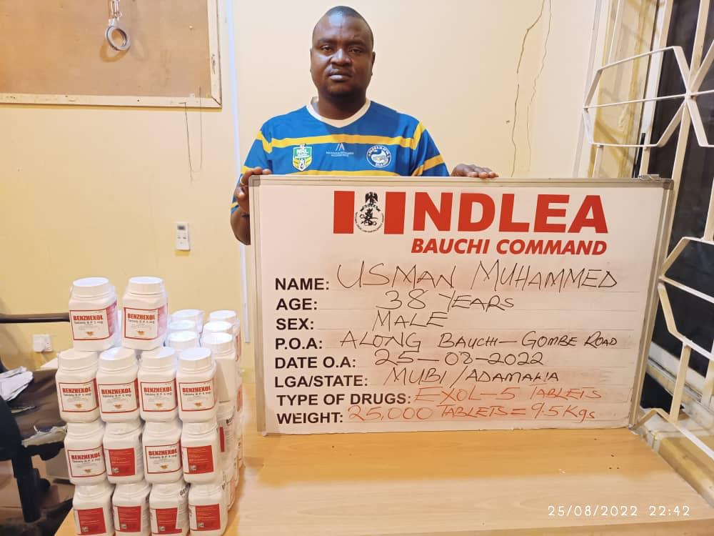 No fewer than 80 blocks of cannabis sativa were recovered from an abandoned tricycle with reg. no: BAU 70 WL while 25,000 tablets of exol-5 were seized from a dealer, Usman Muhammed who was nabbed along Bauchi-Gombe road.