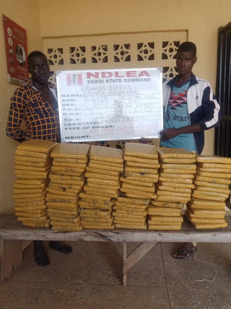 A raid operation at a market in Mubi, Adamawa state on Wednesday 24th Aug led to the seizure of 62,360 tablets of tramadol, diazepam and exol-5 while two suspects, Sirajo Idris and Anas Abubakar were arrested same day with 107 pallets of cannabis at Kamba, a border town in Kebbi State. The skunk weighing 90kg was smuggled in from Benin Republic.