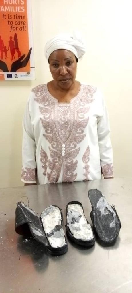 A 56-year-old widow and mother of four, Mrs. Ajisegiri Kehinde Sidika has been arrested by operatives of the National Drug Law Enforcement Agency, NDLEA at the Murtala Muhammed International Airport, Ikeja, Lagos over her attempt to traffic 400grams of cocaine concealed in her footwear to Makkah, Saudi Arabia.