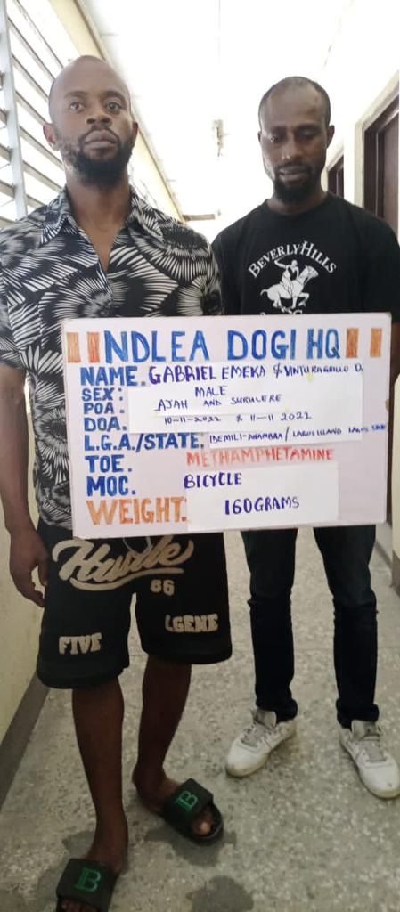 In a related development, not less than 5.6 kilograms of methamphetamine, cocaine and tramadol were discovered in items like play station, bicycles, motor propeller and local fabrics packaged for export to Australia and Cyprus through some courier firms in Lagos. Two suspects, Gabriel Emeka and Vintura Grillo have been arrested in a follow up operation linked to one of the seizures.