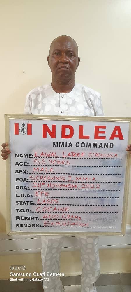 Operatives of the National Drug Law Enforcement Agency, NDLEA, at the weekend disrupted the activities of a major cocaine syndicate in Lagos following the arrest of a 56-year-old trafficker, Lawal Lateef Oyenuga who was on a mission to deliver 400grams of the class .