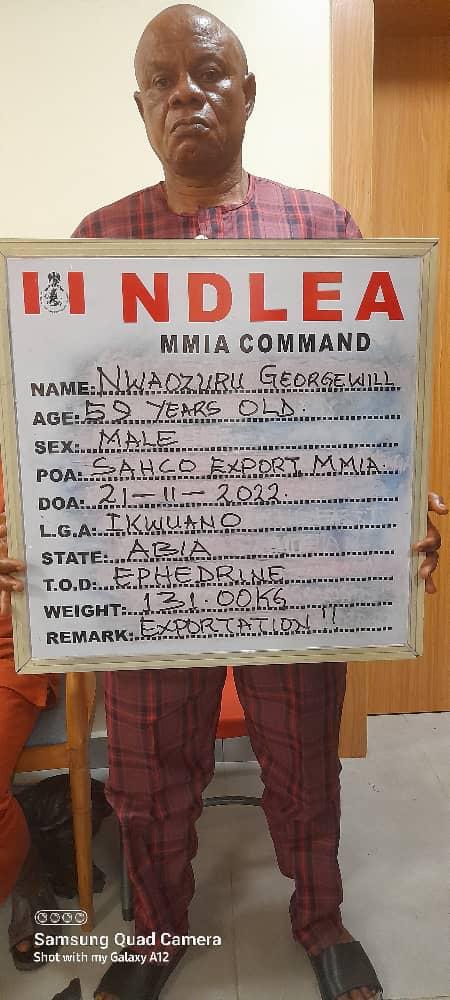 In a related development, attempt by an Organised Criminal Group to traffic 131kg of Ephedrine, a dominant precursor chemical for the production of Methamphetamine to Congo Kinshasa through the SAHCO export shed of the airport was foiled on Monday 21st Nov by NDLEA operatives in conjunction with Aviation Security (AVSEC) officers of the Federal Airport Authority of Nigeria (FAAN).