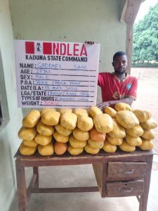 on Thursday 16th May with 2kg cannabis and 33.55grams of diazepam, while Gaddafi Sani, 27, was arrested with 30 kilograms of cannabis along Abuja-Kaduna road, Kaduna.