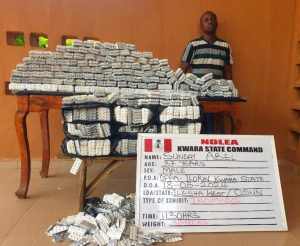 A total of 105kg cannabis was on Friday 17th May recovered from a house at Obola community, Owan West LGA, Edo state and a suspect, Gloria Oris arrested when NDLEA officers raided the area. In Kwara state, two suspects: Abdulganiyu Karaman, 55, and Sunday Abel, 37, were on Saturday 18th May arrested with 83kg cannabis and tramadol at Boriya, Baruten LGA, and Offa respectively.