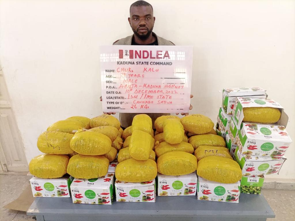 to smuggle into Kano 26kgs of cannabis concealed inside packs of blenders was thwarted by operatives who intercepted the consignment along Abuja-Kaduna express road and later arrested him in a follow up operation in Kano, just as another suspect, Rabilu Sa’ad Abubakar,42,