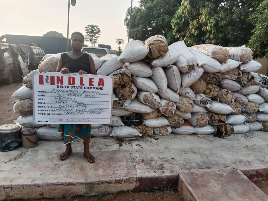 A raid operation in Abbi town, Ndokwa West LGA, Delta State led to the arrest of a pregnant 30-year-old dealer, Aniekem Evelyn, with 1,161kgs of C/S recovered from her warehouse.