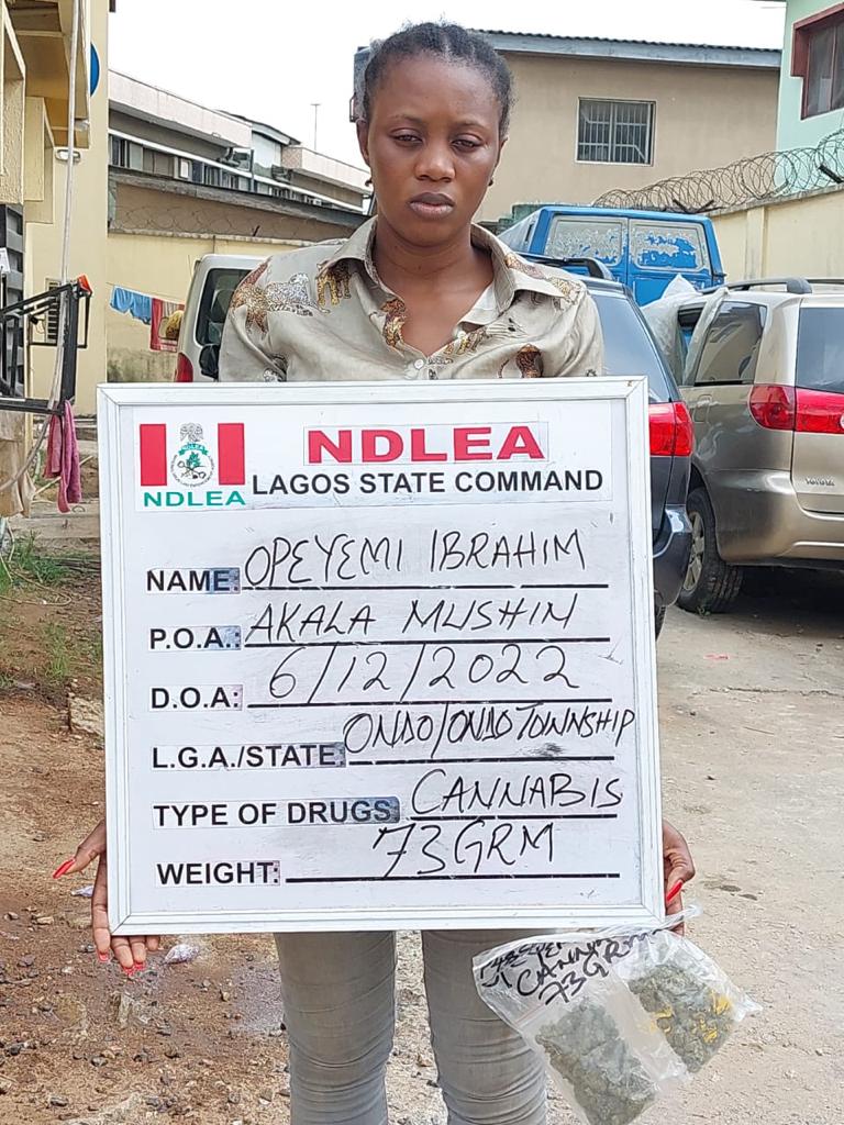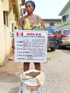 At the Akala notorious drug hub in Mushin area of Lagos, no fewer than 15 drug dealers including two ladies were arrested with 1,400kgs of cannabis sativa among other illicit substances such as heroin, methamphetamine, and 320 bottles of codeine syrup recovered from them during a raid of the area on Friday 9th December.