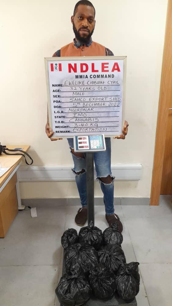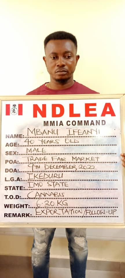 In the same vein, parcels of cannabis weighing 6.30kgs concealed in sound systems (speakers) going to Malabo, Equatorial Guinea through the SAHCO export shed of the airport were also seized on Thursday 8th December by the operatives who initially arrested a freight agent, Joseph Obiji involved and later the following day, Friday 9th Dec nabbed another agent, Mbanu Ifeanyi Andrew in a follow up operation at ASPAMDA market, Trade Fair complex, Ojo area of Lagos.