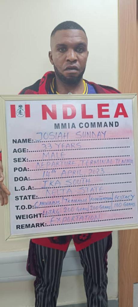 A thorough search of the suspects two black bags led to the discovery of 4.80 kilograms of cannabis concealed in three winter jackets and various quantities of Tramadol, Rohypnol, Ecstasy (Designer drug) hidden in bottles of body lotion. Preliminary investigation revealed that the suspect came into Nigeria from Oman on April 7, and was returning exactly a week after.