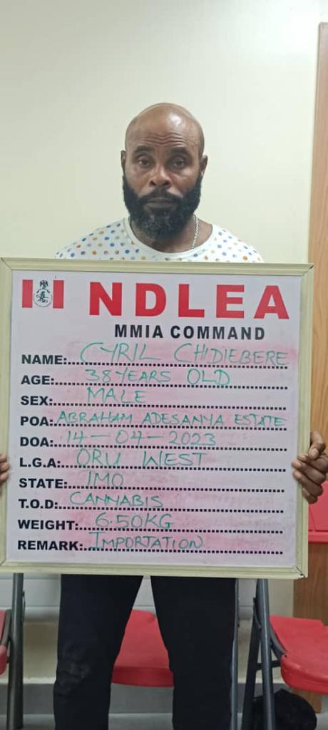 In the same vein, a Lekki Lagos based businessman, Cyril Chidiebere was on Friday 14th April arrested along with two of his freight agents: Mejabi Peter Sunday and Oyeyinka Babatunde over their involvement in the importation of twelve (12) parcels of Loud, a strain of cannabis, weighing 6.50kg, which was part of a consolidated cargo brought in from the United States of America.