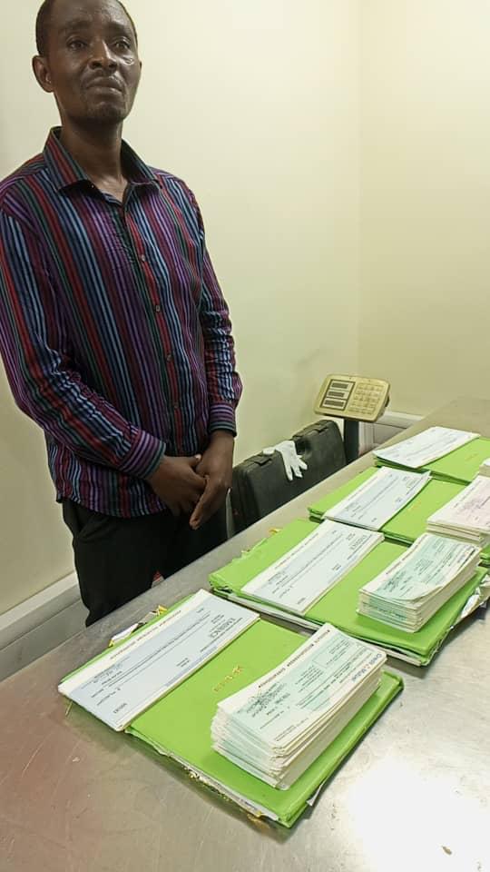 At least, a suspect, Oguma Richard Uchenna has been arrested in connection to the attempt to export the cheques, which were neatly concealed inside four bound hard cover books disguised as academic project literatures, to the United Kingdom.