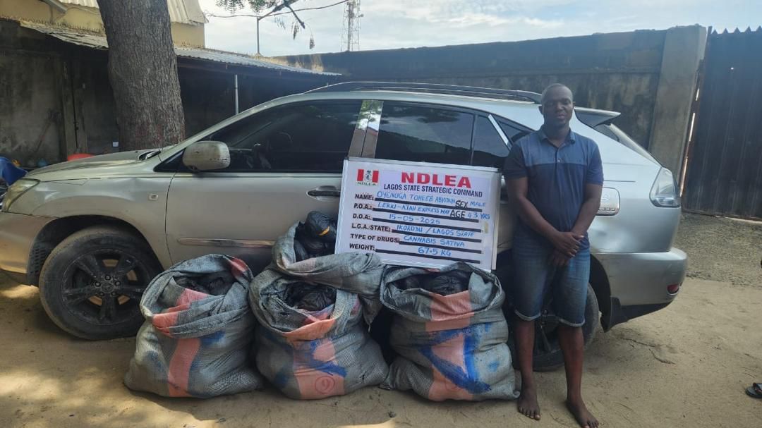 was arrested along Lekki/Epe expressway, Lagos on Thursday 15th May with 67.5kg of the same psychoactive substance.
