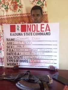 Meanwhile, NDLEA operatives on patrol along Abuja – Kaduna highway on Friday 16th May intercepted a 29-year-old Ismail Isah with an AK 47 rifle and two magazines concealed in a sack of maize. He will be transferred to the appropriate security agency for further investigation.