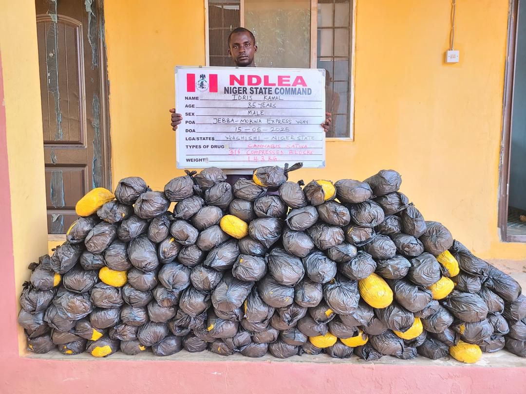 In Niger state, NDLEA operatives on patrol along Mokwa-Jebba road on Thursday 15th May intercepted a Toyota Carina car marked AGL 945 BK conveying 316 blocks of skunk weighing 143kg while a suspect, Idris Kamal, 35, was arrested. Same day, operatives on patrol at Chachi junction along Kaduna road arrested Emmanuel Hassan, 26, with 14.3kg Loud. A swift follow up operation led to the arrest of the actual owner of the consignment, Bello Aliyu (alias Liti), 39.