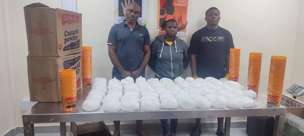Operatives of the National Drug Law Enforcement Agency, NDLEA, have intercepted a large consignment of methamphetamine concealed in powdered custard containers as part of a consolidated cargo going to London, United Kingdom at the SAHCO export shed of the Murtala Muhammed International Airport, MMIA, Ikeja Lagos.