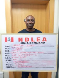 Meanwhile, NDLEA operatives at the Murtala Muhammed International Airport, MMIA Ikeja Lagos on Wednesday 2nd July intercepted a frequent flyer Aburemi Hysent who specialises in conveying goods for customers from Nigeria to Italy and vice versa. He was found to have hidden 7,660 pills of tramadol 225mg and 200mg inside food items packed among other goods he was conveying to Italy. He claimed he was to be paid the sum of 800 euros upon successful delivery of the drug consignment in Italy.