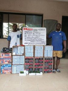 In the same vein, operatives of the Lagos Command of the Agency on Wednesday 20th December conducted a search operation on two shops marked Chex Mat Global Link Limited at Trade Fair complex in Ojo area of Lagos where 258 cartons of codeine-based cough syrup and eight cartons of codeine tablets were recovered.