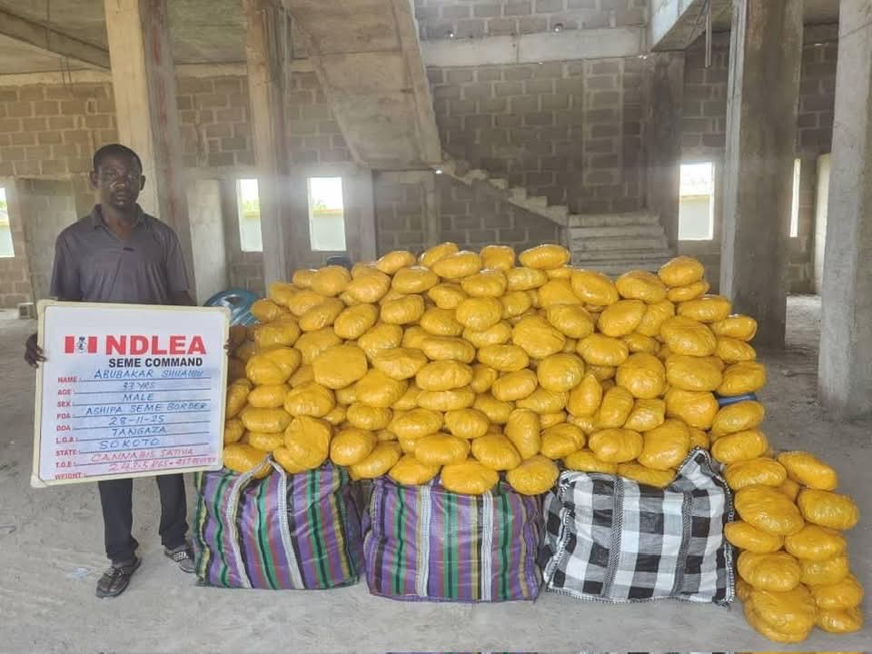 In Kogi State, Anthony Sylvester, 49, was arrested along the Okene–Lokoja highway on Wednesday, 26 November, transporting 649kg of skunk in a truck. The same day, operatives in Seme raided a warehouse at Ashipa, Badagry, arresting Abubakar Shuaibu, 33, and recovering 487 blocks of skunk weighing 243.5kg.
