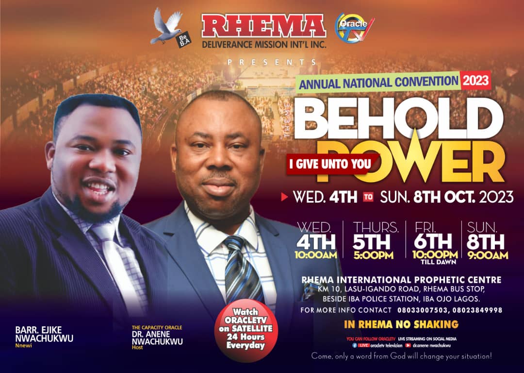 Rhema Deliverance Missions’ annual convention is always heralded with huge anticipation and 2023 convention is not an exception, with the theme; “Behold I Give Unto You Power,” it promises to be one to be talked about in many months to come with the huge expectations of reign of power, healing, restoration and deliverance.