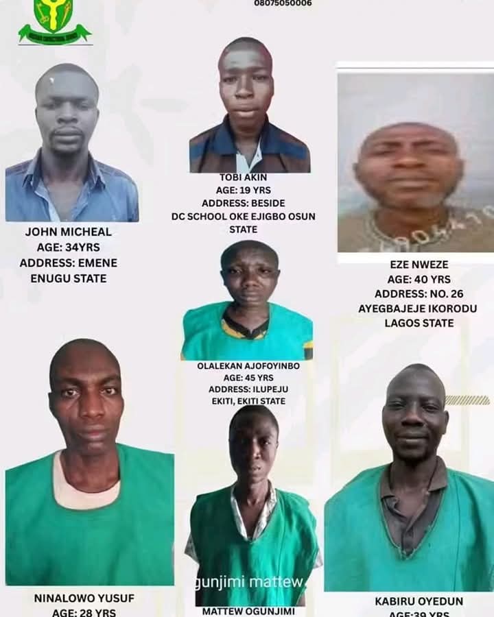 The Nigerian Correctional Service (NCoS) has announced a N5 million cash reward for anyone who provides credible information leading to the recapture of seven inmates who escaped from the Medium Security Custodial Centre in Ilesa, Osun State.