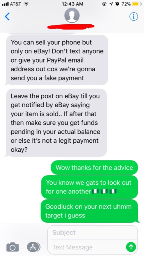 The scammer then went ahead to give him advice on the safer way to sell phones online.
