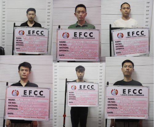 In a statement shared by the EFCC on Tuesday via X, the convicted individuals—LI Dong, Deng Wei Qiang, Huang Bo, Xiong Zhen, Lai Rui Feng, Zhao Xiao Hui, Lui Hai Rong, Lui Gang, and Du Ji Feng—were said to be part of a group of 792 suspected cryptocurrency investment and romance scammers arrested on December 19, 2024.