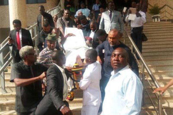 The incident happened just as he was making his way to the dock for his resumed trial at the Federal High Court in Abuja.