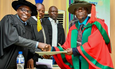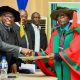 The Vice-Chancellor, Prof Oluwole Banjo, Congratulating Prof Oyenuga after delivering the Inaugural Lecture…