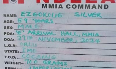After 35 years in Brazil, a businessman based in the South American country, Ezeokoli Sylva has returned home with 700grams of cocaine buried in his stomach,...